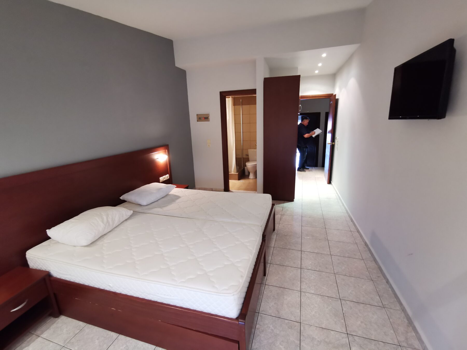 OPREMA: TWC, čajna kuhinja sa rešoom, aspiratorom, frižiderom i osnovnim posuđem, LED TV 32″, split klima, velike terase okrenute prema bazenu ili glavnoj ulici. Standardni krevet je dimenzija 90x190cm. Fioka se podiže i čini u potpunosti funkcionalni ležaj sa dušekom 90x190cm.